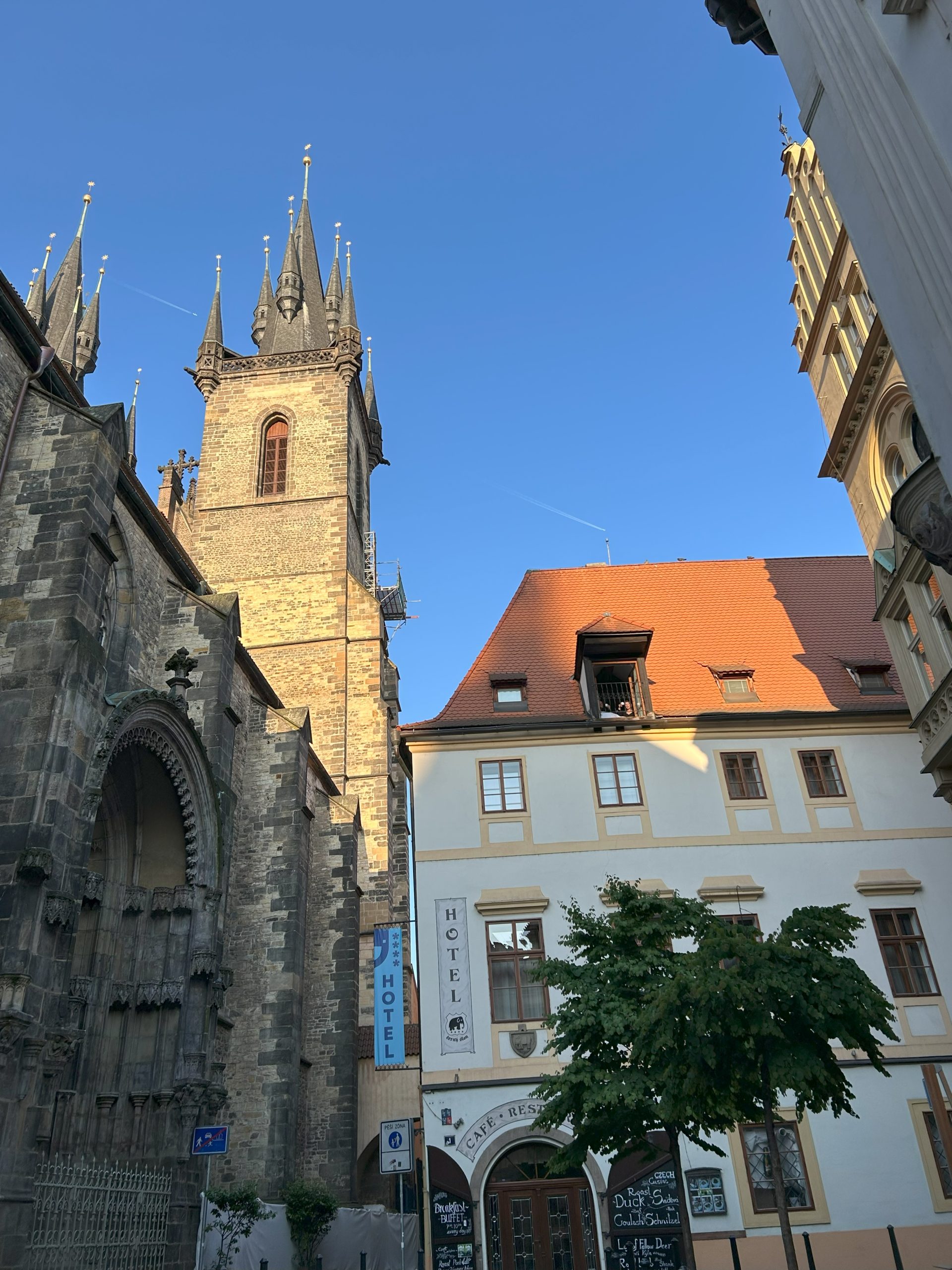 朝5時の人影のない旧市街広場やカレル橋、プラハ城近くの丘にあるストラホフ修道院から望む赤いレンガの街並み、静寂な夜のユダヤ人街など、どこも心に残る風景でした。宿泊したティーン教会通り沿いのホテルは600年前の建物だそうで、まさに歴史の中を彷徨っているような一日でした。