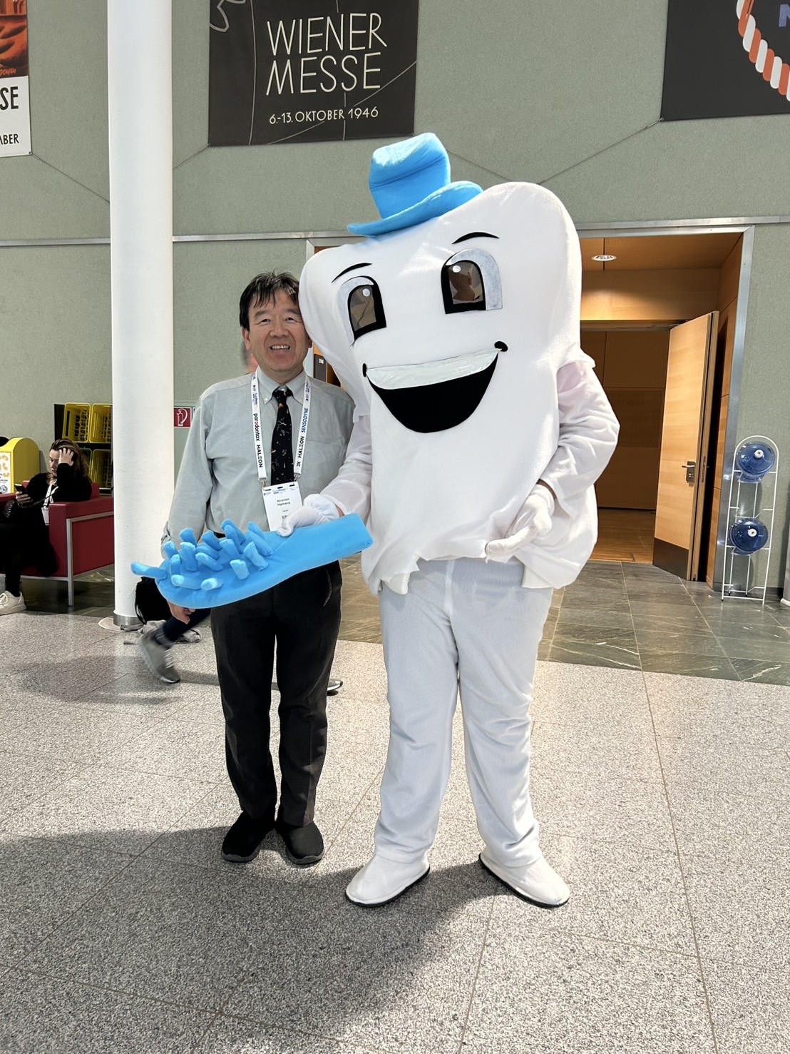 今回の学会のキャラクター(添付写真参照とのこと)のように、「頑張ってブラッシングしましょう」という歯周病治療・予防のゴールドスタンダードは変わらないのだと、改めて実感した次第です。