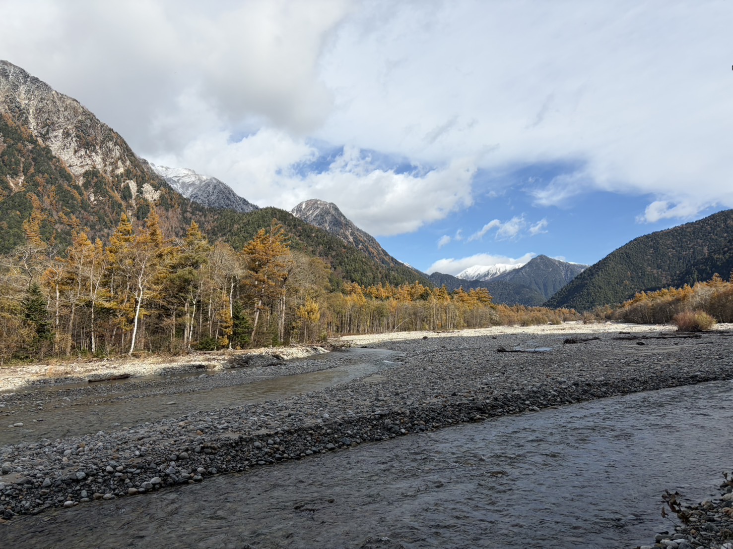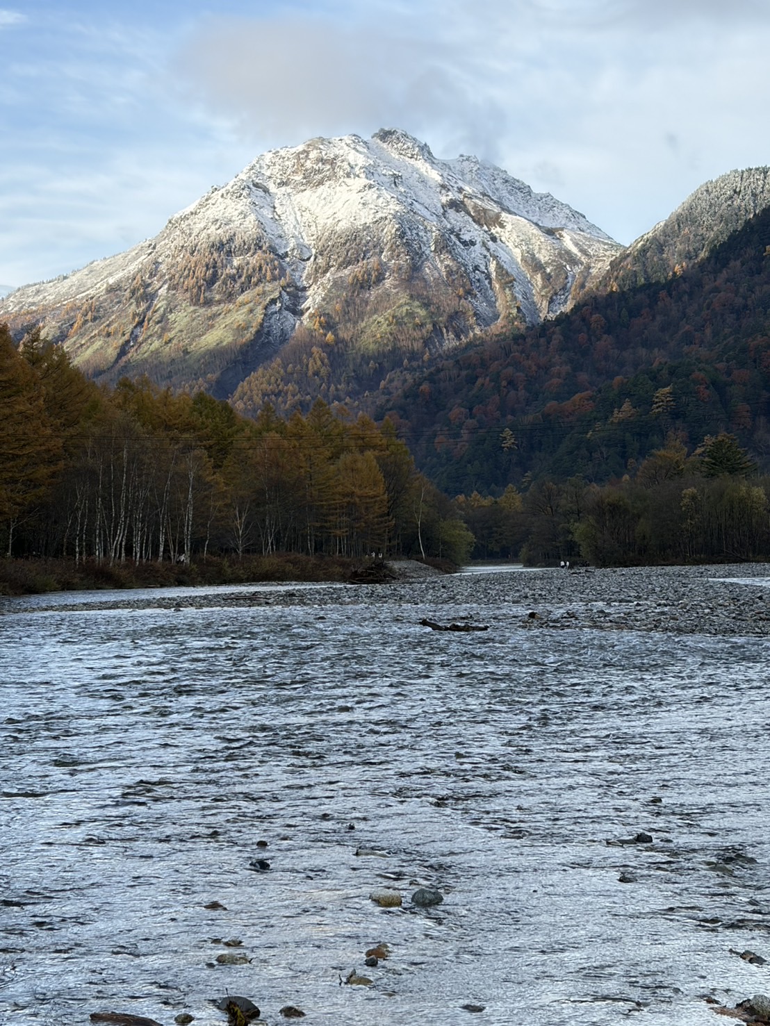 朝一番のバスで河童橋に到着し(改めてインバウンド効果を体感=早朝にもかかわらず橋の上のほとんどが外国人!)、見事に広がる穂高と焼岳を満喫できました。